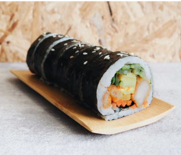 Seaweed-wrapped rice rolls filled with chicken and vegetables. Perfectly portable, balanced, and tasty, it’s a great choice for a light meal or snack.